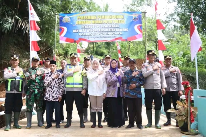 Banjarnegara, Radar007.com — Polres Banjarnegara meresmikan pembangunan Jembatan Merah Putih Presisi yang menghubungkan Desa Serang dan Desa Winong, Kecamatan Bawang, Kabupaten Banjarnegara, Jumat (13/2/2026).