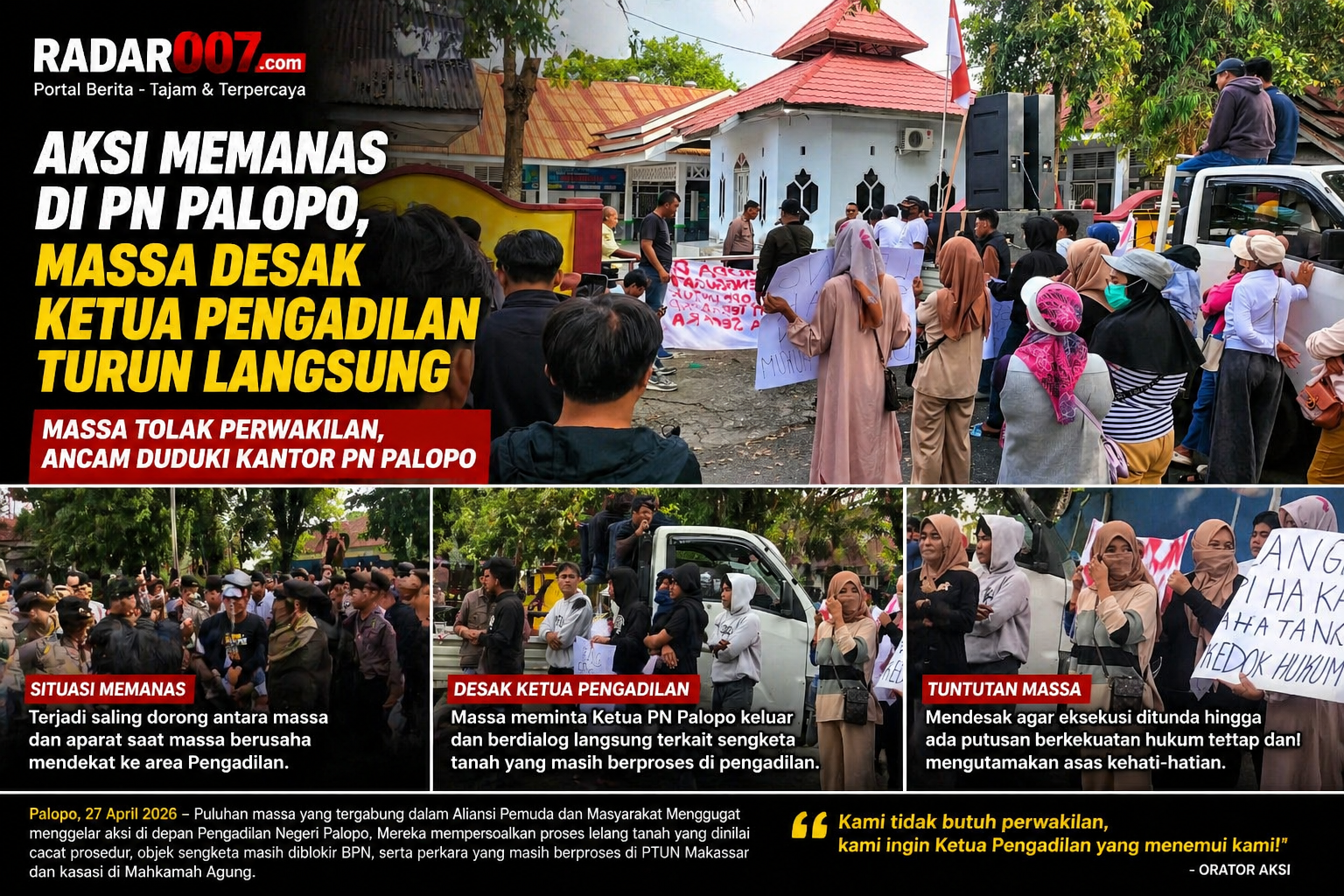 Aksi ini menyita perhatian publik karena menyangkut tuntutan transparansi, kehati-hatian, dan kepastian hukum dalam proses peradilan di Kota Palopo.