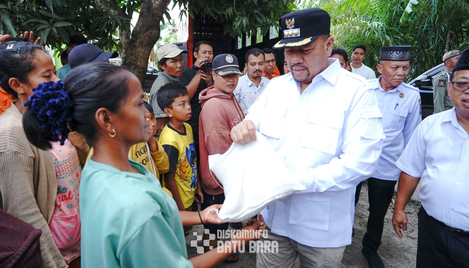 Selanjutnya Bupati Batu Bara bersama Direktur Distribusi dan Cadangan Pangan Bapanas, para kepala OPD, serta jajaran Pemerintah Kabupaten Batu Bara langsung bergerak menuju lokasi yang terdampak bencana banjir di Desa Nenassiam, Kecamatan Medang Deras.