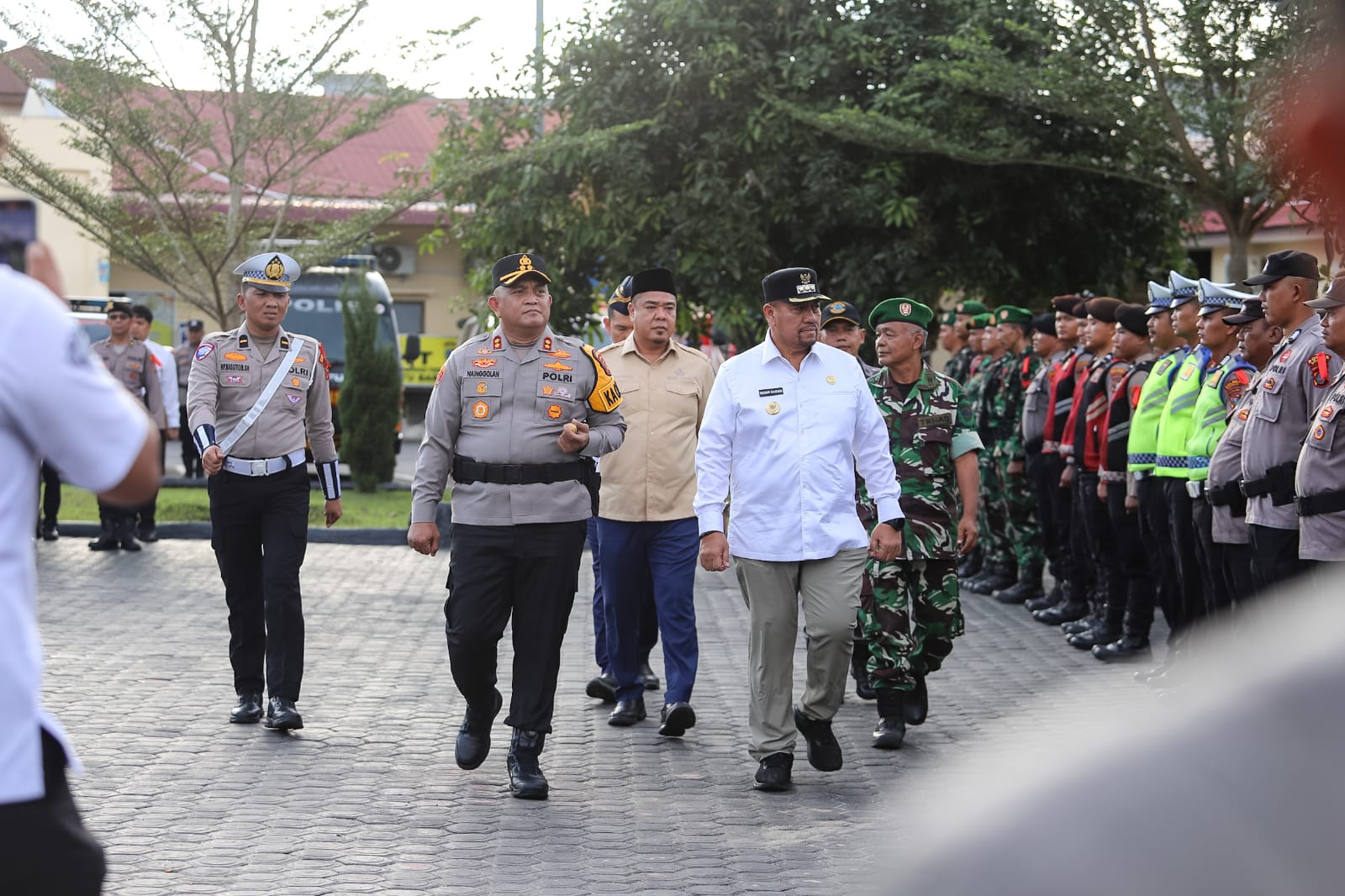 Batu Bara, Radar007.com – Bupati Batu Bara H. Baharuddin Siagian, S.H., M.Si., bersama Wakil Bupati Syafrizal, S.E., M.AP., dan Kapolres Batu Bara AKBP Doly Nelson H.H. Nainggolan melakukan pengecekan kesiapan personel yang akan dikerahkan selama pelaksanaan Operasi Lilin 2025, pada Apel Gabungan Gelar Pasukan Operasi Kepolisian Terpusat Lilin 2025.