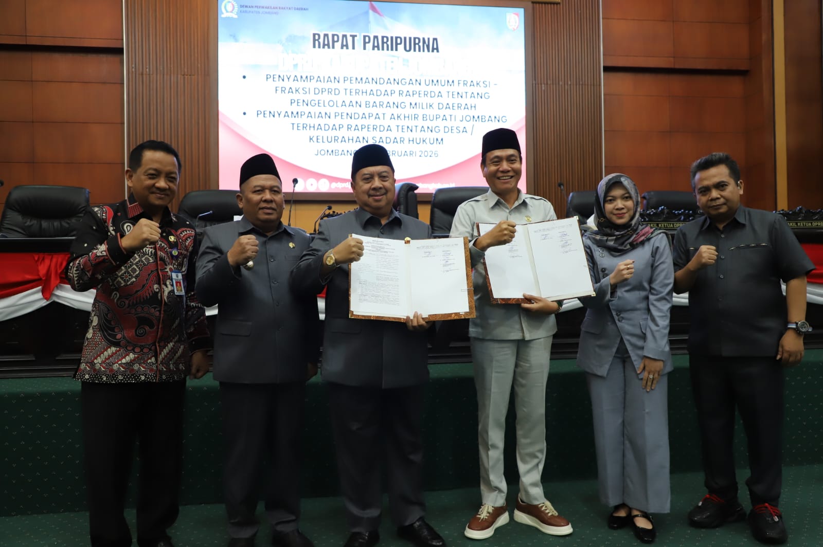 JOMBANG — Pemerintah Kabupaten Jombang bersama DPRD Kabupaten Jombang resmi menyepakati Rancangan Peraturan Daerah (Raperda) Inisiatif DPRD tentang Desa/Kelurahan Sadar Hukum untuk ditetapkan menjadi Peraturan Daerah. Persetujuan tersebut disampaikan langsung oleh Bupati Jombang, Warsubi, dalam Rapat Paripurna DPRD Kabupaten Jombang yang digelar di ruang paripurna, Kamis (5/2/2026) pagi.