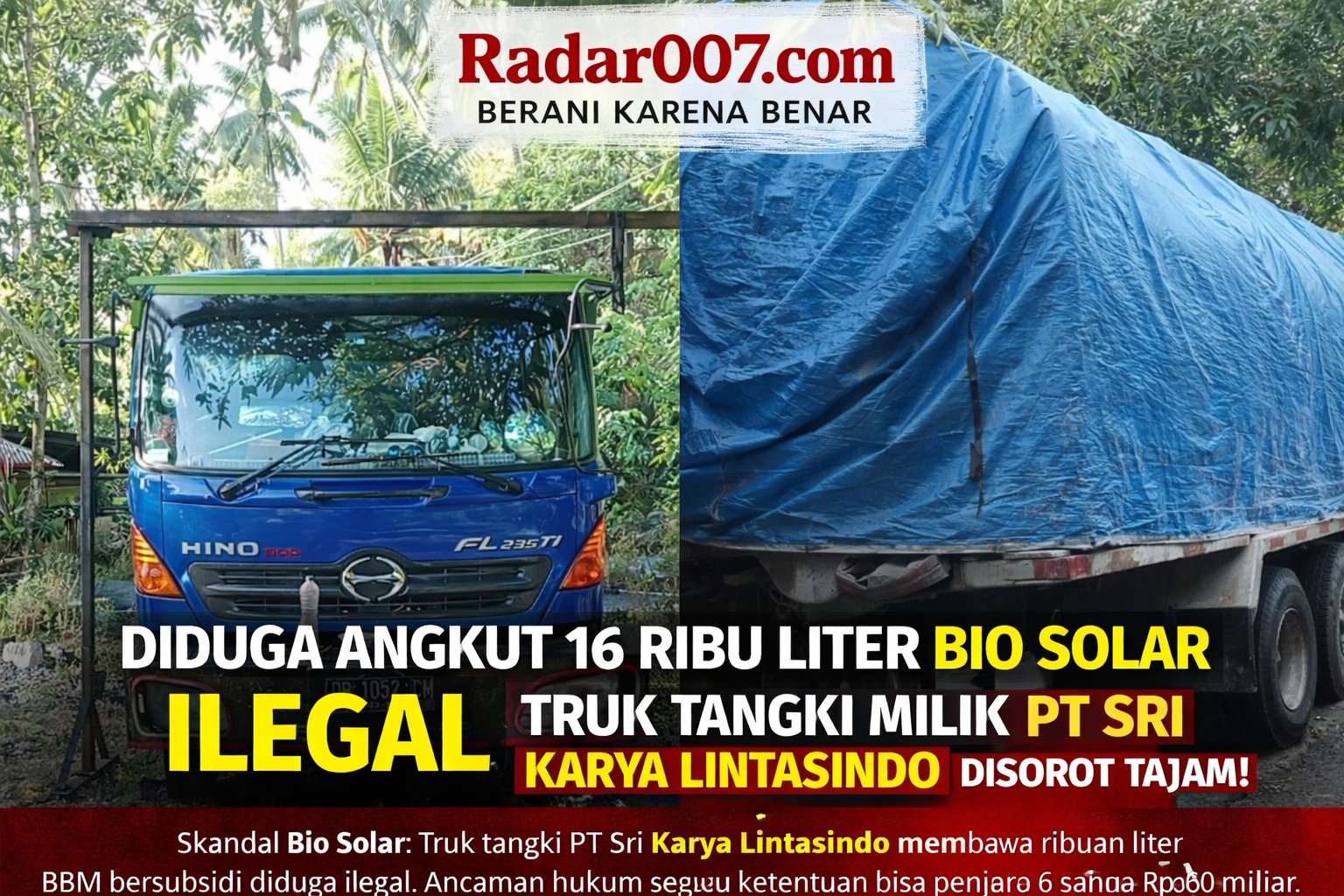 Minahasa, Radar007.com — Praktik dugaan peredaran bahan bakar minyak (BBM) bersubsidi jenis Bio Solar secara ilegal kembali mencuat di Sulawesi Utara. Kali ini, sorotan tajam mengarah pada sebuah kendaraan tangki berkapasitas 16.000 liter yang diduga milik PT Sri Karya Lintasindo.