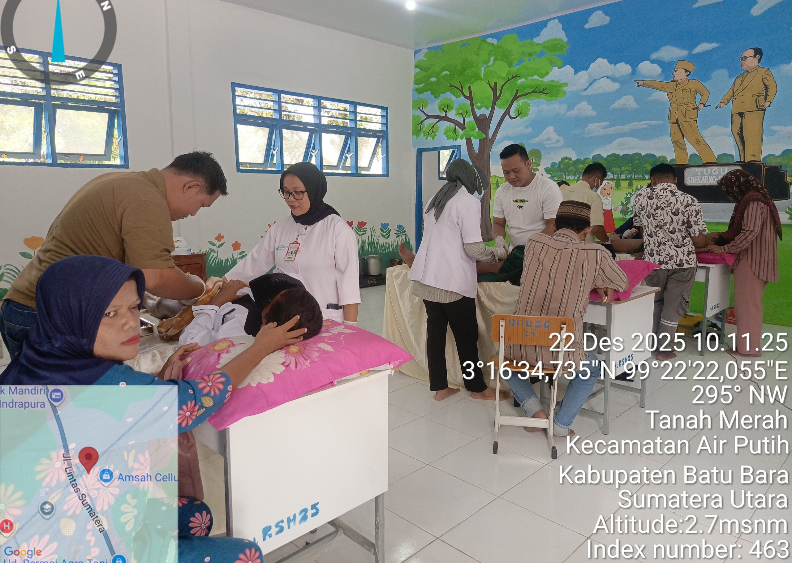 Kegiatan kemanusiaan ini dilaksanakan di Lapangan SD Negeri 01 Desa Tanah Merah, Dusun Akasia, Kecamatan Air Putih, Kabupaten Batu Bara, dengan sasaran masyarakat Desa Tanah Merah dan sekitarnya.