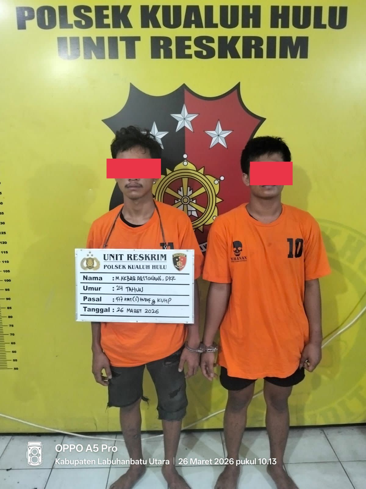 Pada Kamis (26/3/2026) sekitar pukul 06.30 WIB, tim yang dipimpin Kanit Reskrim Ramadhan Hilal berhasil mengamankan tersangka Muhammad Virza alias Virza.