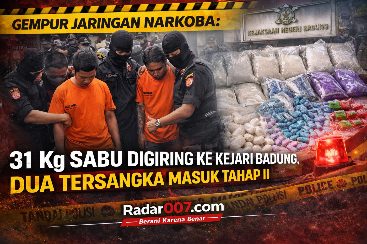 Badung, Radar007.com — Aparat penegak hukum kembali menunjukkan taringnya dalam perang melawan narkotika. Direktorat Tindak Pidana Narkoba Bareskrim Polri melalui Subdit IV resmi melimpahkan dua tersangka beserta barang bukti dalam jumlah besar ke Kejaksaan Negeri Badung, Selasa (7/4/2026).