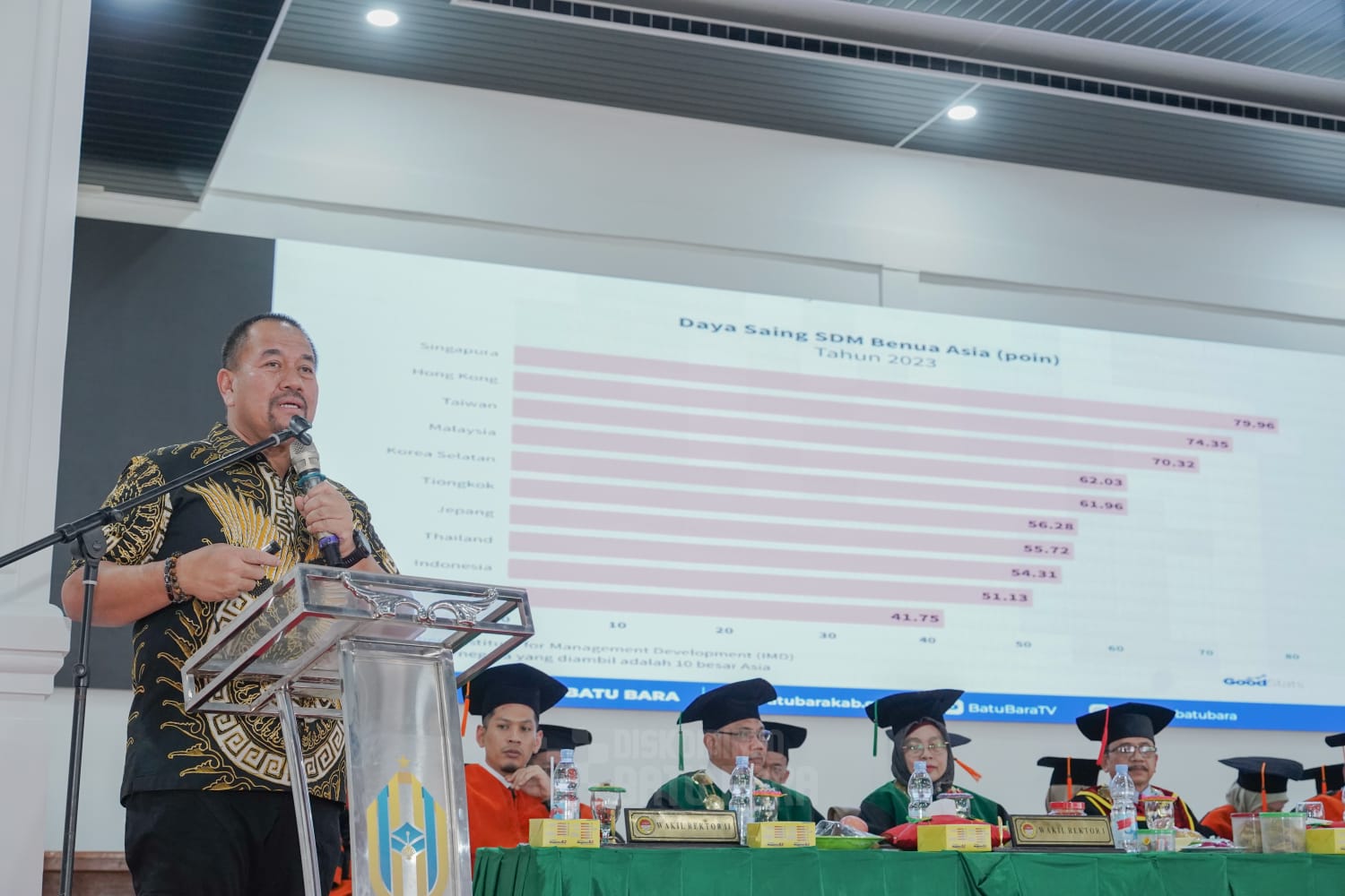Dalam kesempatan tersebut, Bupati Batu Bara menyampaikan apresiasi dan ucapan selamat kepada seluruh wisudawan dan wisudawati yang telah berhasil menyelesaikan pendidikan pada jenjang sarjana dan magister. Dirinya berharap para lulusan dapat meraih karier setinggi-tingginya serta mampu memberikan kontribusi positif di tengah masyarakat.