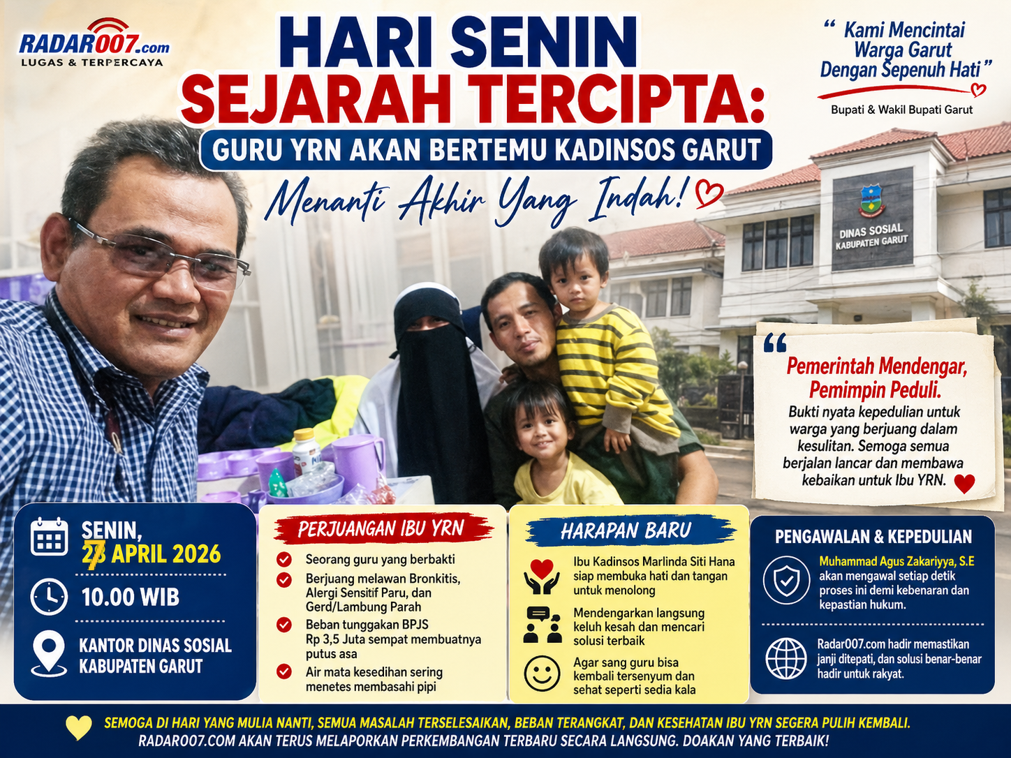Sebuah momen penuh harapan dan haru akan tercipta pada Senin, 27 April 2026. Setelah melewati perjalanan panjang yang penuh ujian, seorang guru berinisial YRN akhirnya dijadwalkan bertemu langsung dengan Kepala Dinas Sosial Kabupaten Garut, Dr. Hj. Marlinda Siti Hana, M.K.M.