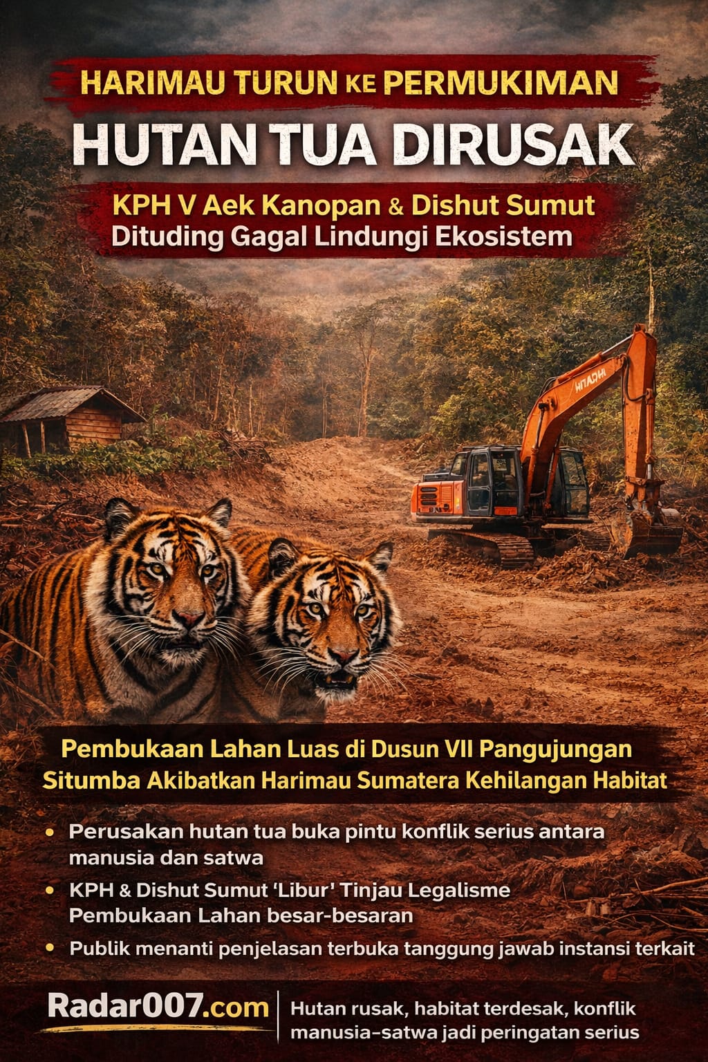 Radar007.com menilai, kemunculan Harimau Sumatera harus menjadi alarm keras bagi KPH V Aek Kanopan dan Dinas Kehutanan Provinsi Sumatera Utara. Negara tidak boleh hadir hanya setelah konflik dan ancaman keselamatan muncul, sementara akar persoalan dibiarkan berlarut.