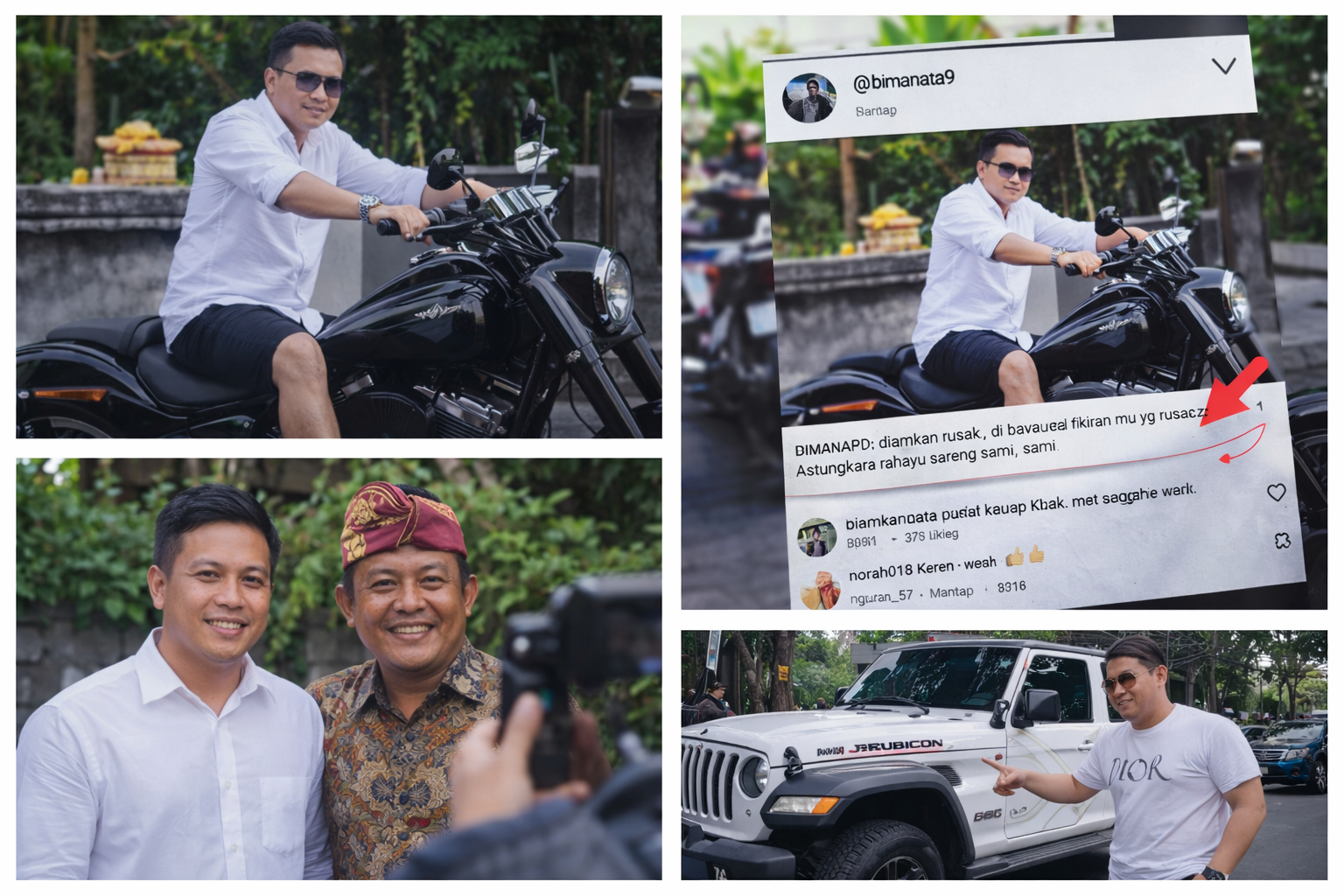 Yang membuat publik tersentak bukan hanya motor mewah itu. Caption yang menyertainya berbunyi: “diamkan rusak, di bawa keluar fikiran mu yg rusak. Astungkara rahayu sareng sami.”