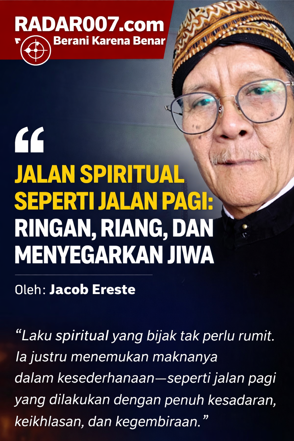 Maka, laku spiritual yang bijak tak perlu rumit. Ia justru menemukan maknanya dalam kesederhanaan—seperti jalan pagi yang dilakukan dengan penuh kesadaran, keikhlasan, dan kegembiraan.