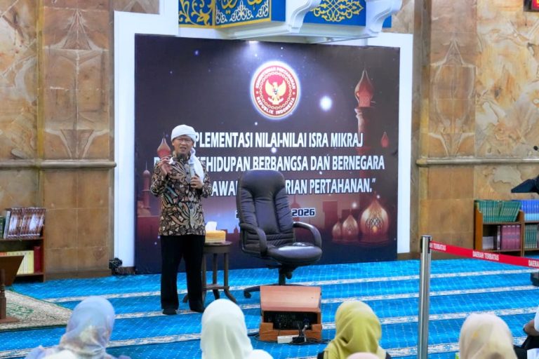 Kementerian Pertahanan Republik Indonesia menggelar Peringatan Isra Mikraj Nabi Muhammad SAW Tahun 1447 H/2026 M di Masjid At-Taqwa Kemhan, Jakarta, Rabu (21/1/2026).