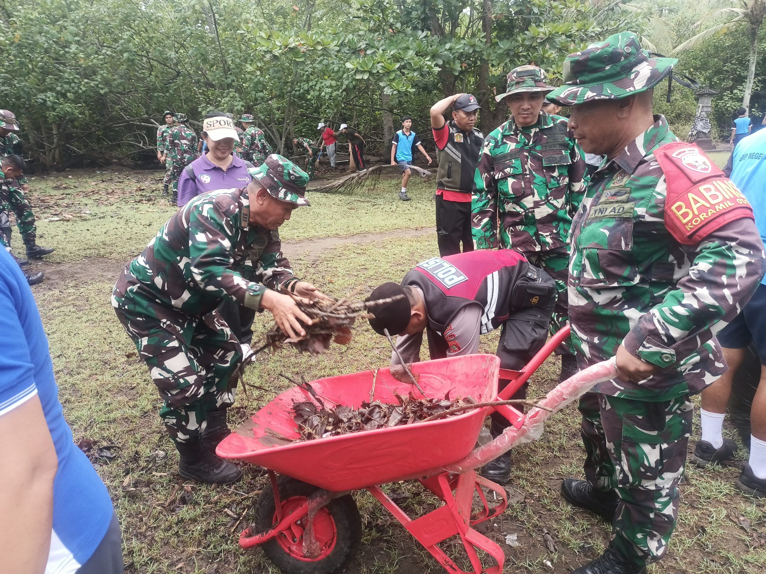 Kegiatan melibatkan Sekitar 120 orang berpartisipasi aktif dalam kegiatan ini, menciptakan sinergi solid antara unsur TNI, Polri, pemerintah daerah, dan masyarakat sipil. Fokus utama kegiatan adalah membersihkan sampah plastik yang mengancam ekosistem vital hutan mangrove.