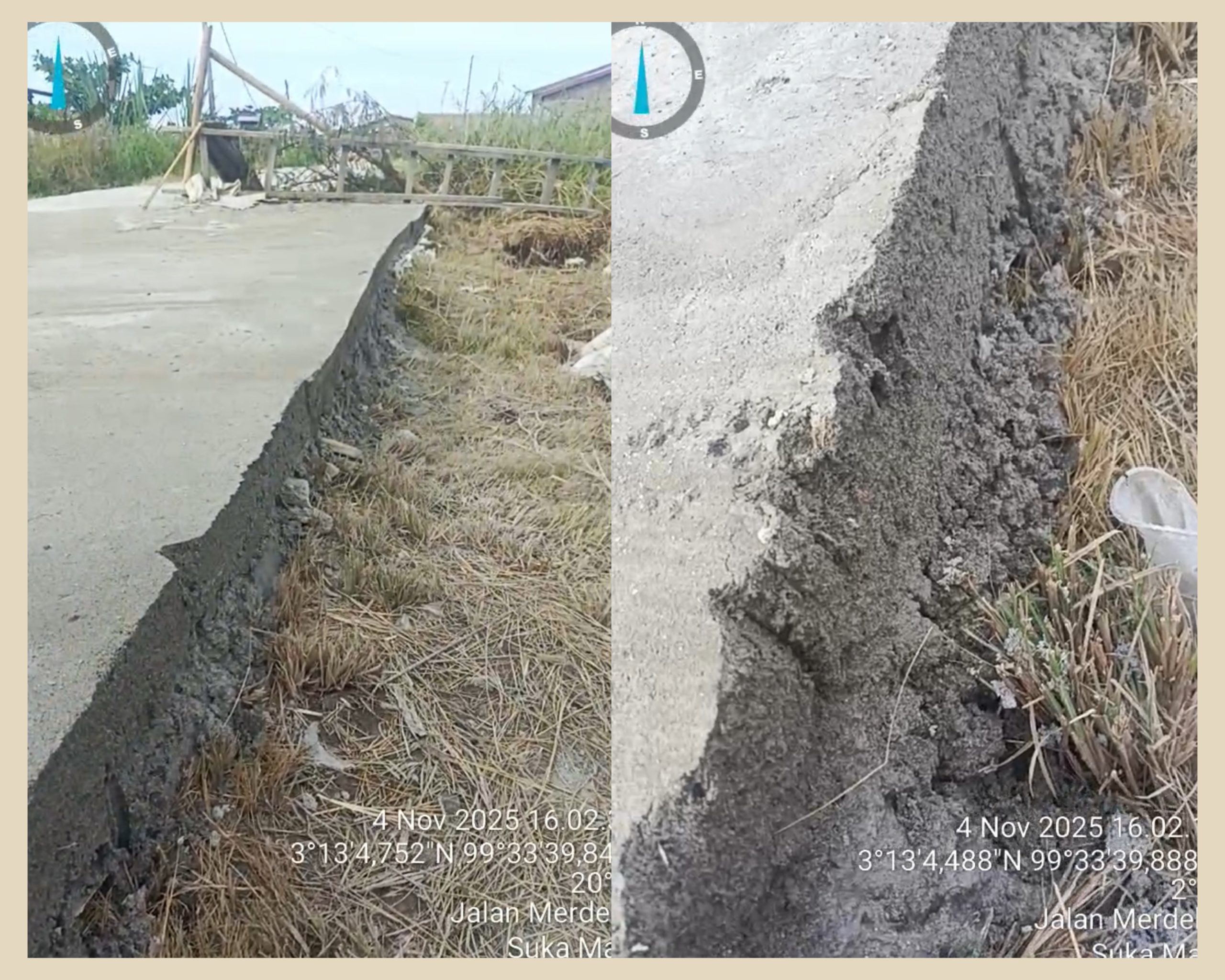 Sebelumnya, salah seorang wartawan media online investigasi, RS, yang meninjau langsung ke lapangan, mengungkapkan bahwa adukan beton yang digunakan terlihat encer, rapuh, dan jauh dari standar K-175/cm² yang seharusnya menjadi acuan kekuatan tekan beton.