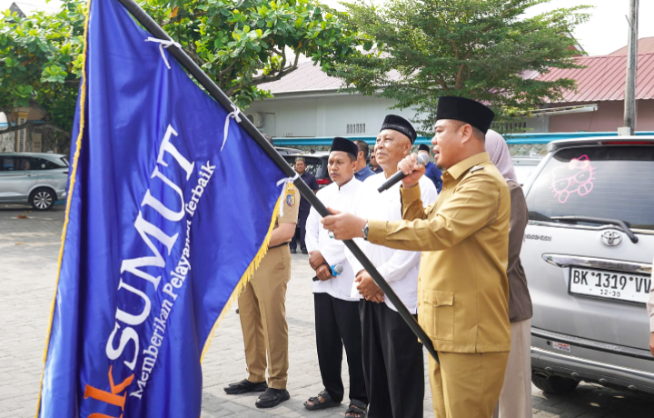 Selanjutnya Wakil Bupati Batu Bara bersama Pls. Pimpinan Cabang Bank Sumut Lima Puluh secara resmi melepas keberangkatan para calon jemaah untuk mengikuti manasik haji.