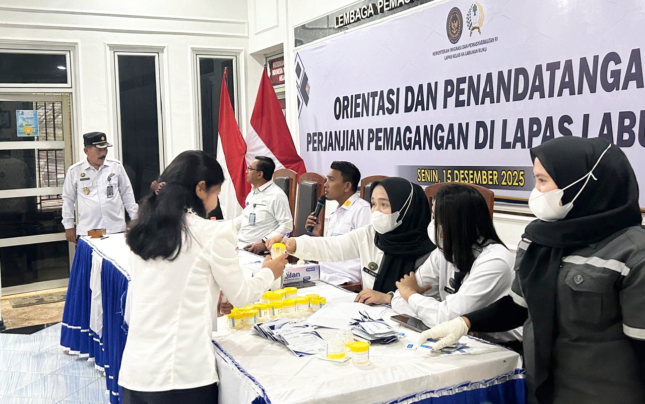 Batu Bara, Radar007.com — Dalam rangka memastikan lingkungan kerja yang bersih dari penyalahgunaan narkoba serta sebagai bentuk deteksi dini, Lembaga Pemasyarakatan Kelas IIA Labuhan Ruku melaksanakan tes urin kepada 39 peserta magang Program Kementerian Ketenagakerjaan (Kemenaker), Kamis (18/12/2025). Kegiatan ini dilaksanakan di aula Lapas Labuhan Ruku.
